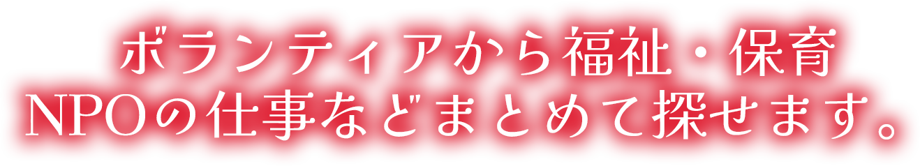 ボランティア情報から、NPO法人・社会的企業の職員募集、保育・福祉分野の求人まで幅広く掲載しています。